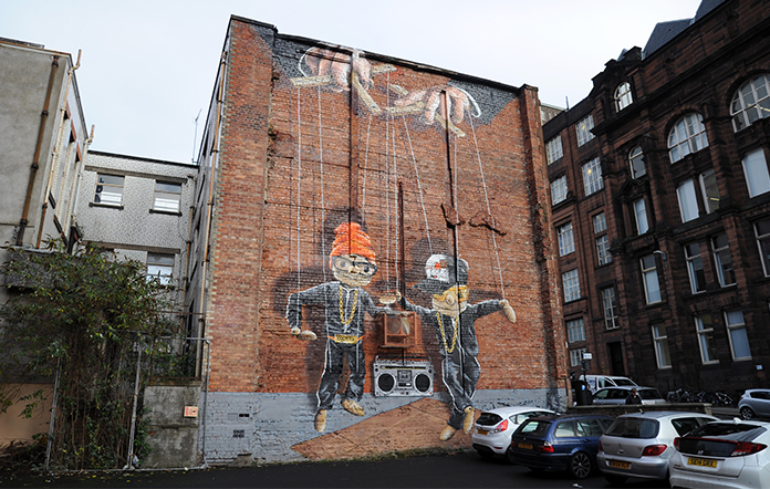 Working with Art Pistol, Rogue-One has added to his existing portfolio of murals with another quirky installation here on John Street.