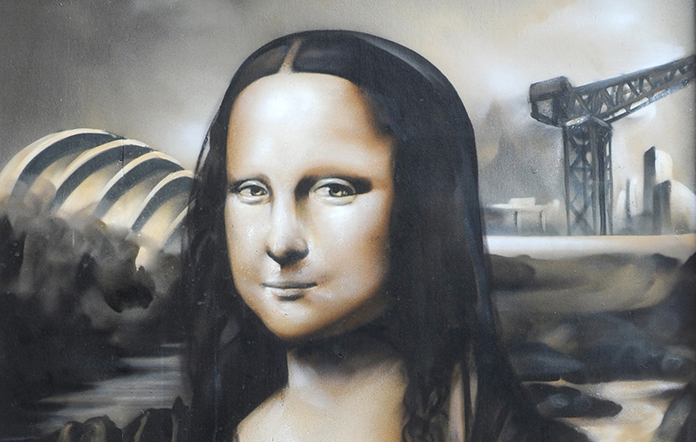 His depiction of Da Vinci’s Mona Lisa has already been dubbed “The Mona Lassie” by Glaswegians. It features a woman holding a can of Irn-Bru in front of a background of the Clyde Auditorium and Titan Crane.