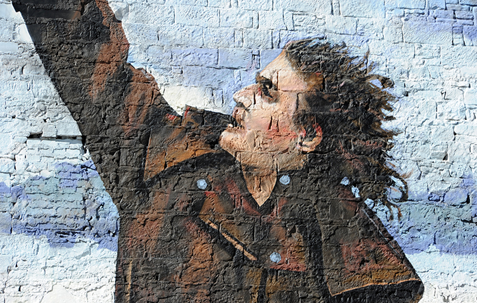This is the second of the two commemorative Billy Connolly murals installed by Rogue One. It is a
