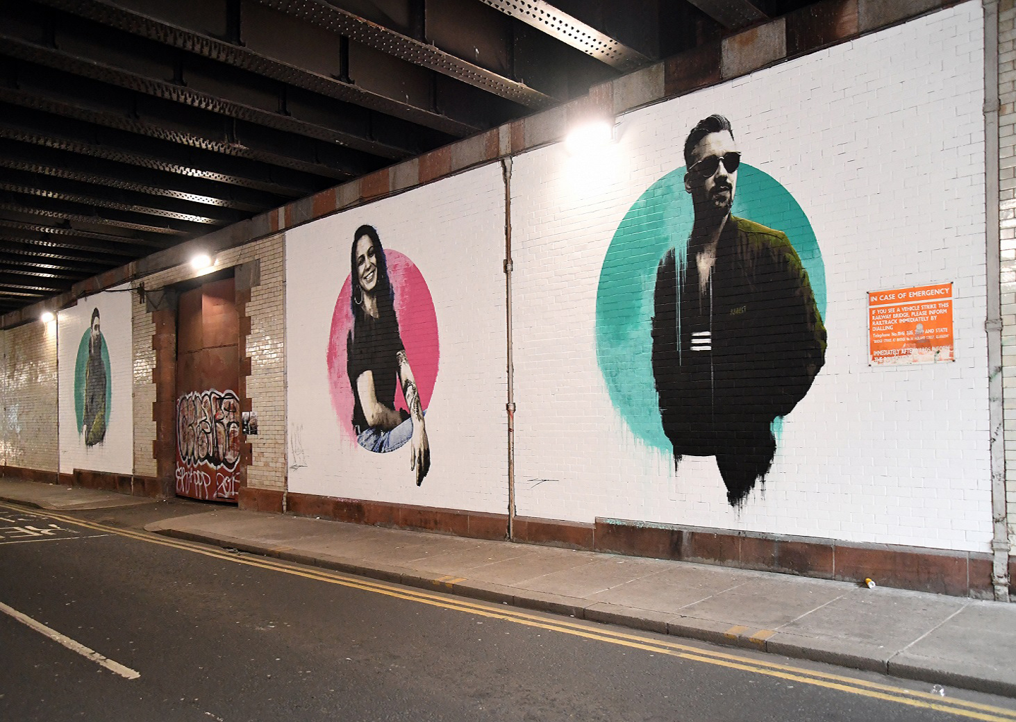 These new portraits from James Klinge form an emerging gallery and provide bold statements of colour against the more industrial landscape. Fresh and dynamic they help to redefine the space around them.